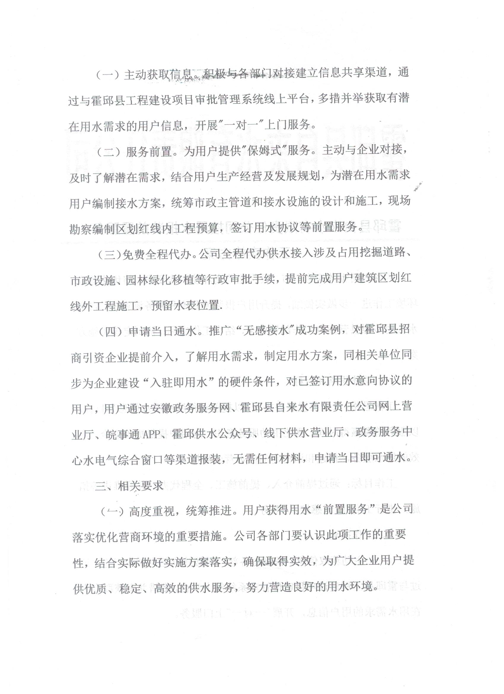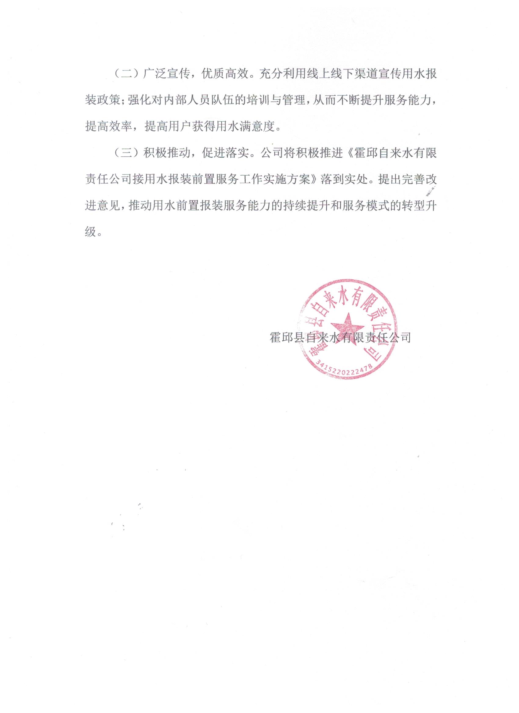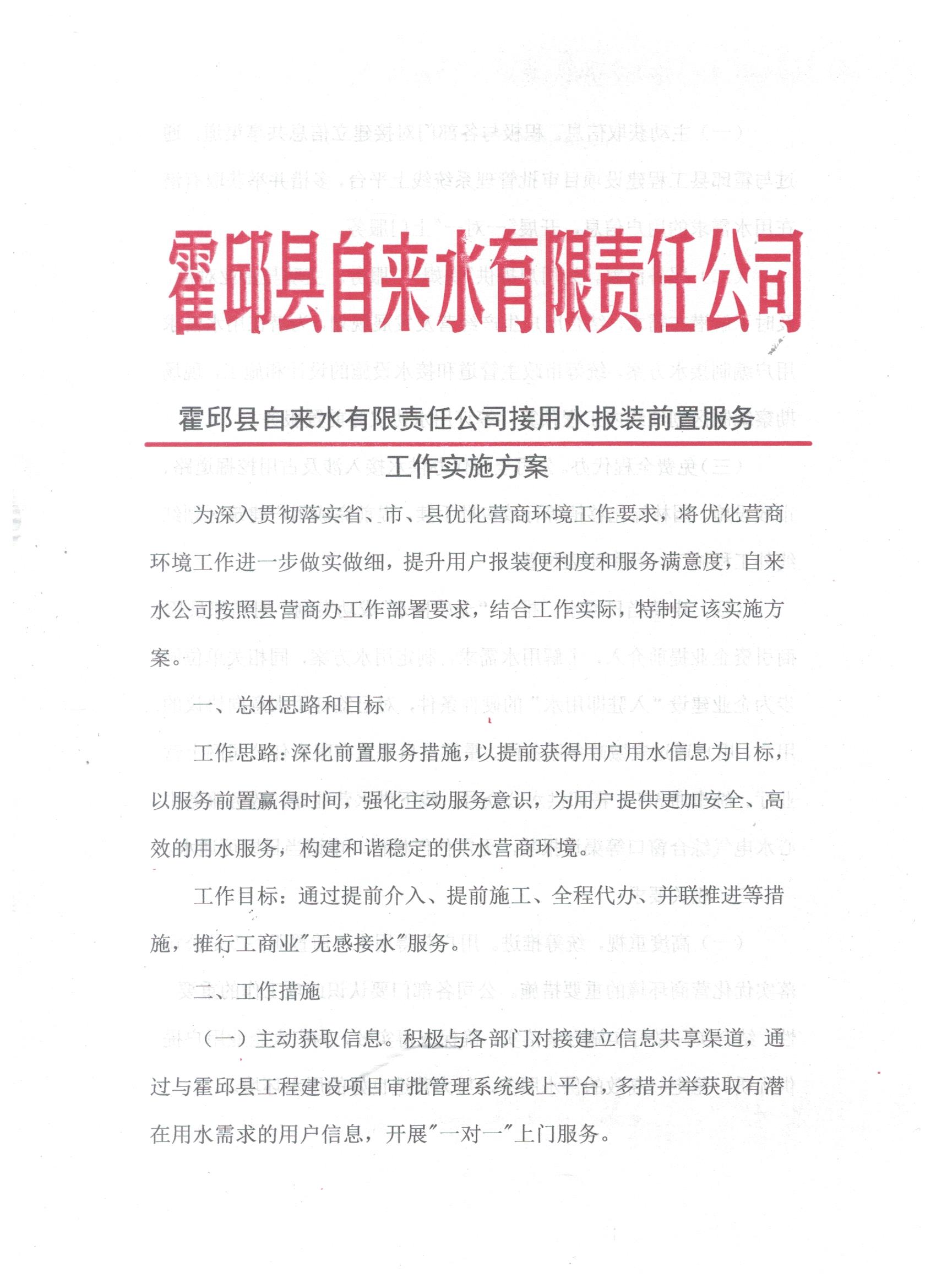 霍邱縣自來水有限責任公司接用水報裝前置服務工作實施方案