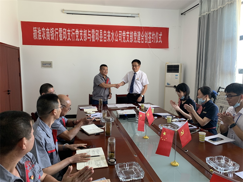 2022年6月29日下午15時,在霍邱自來水公司三樓會議室進行潁淮農(nóng)商銀行霍邱支行與霍邱自來水公司黨支部黨建合作創(chuàng)新簽約儀式。