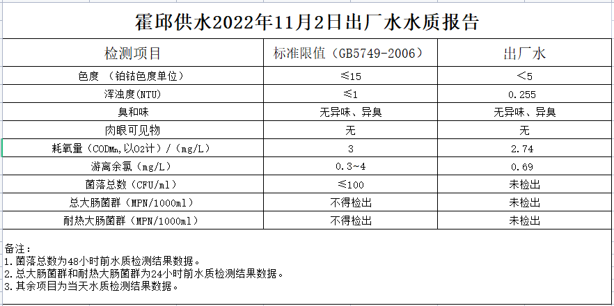 2022年11月2日出廠水水質(zhì)報(bào)告