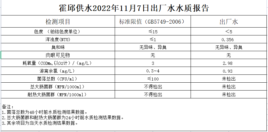 您現(xiàn)在的位置: 首頁 - 通知公告 - 水質(zhì)公告 - 出廠水水質(zhì)(8項) - 2022年11月7日出廠水水...