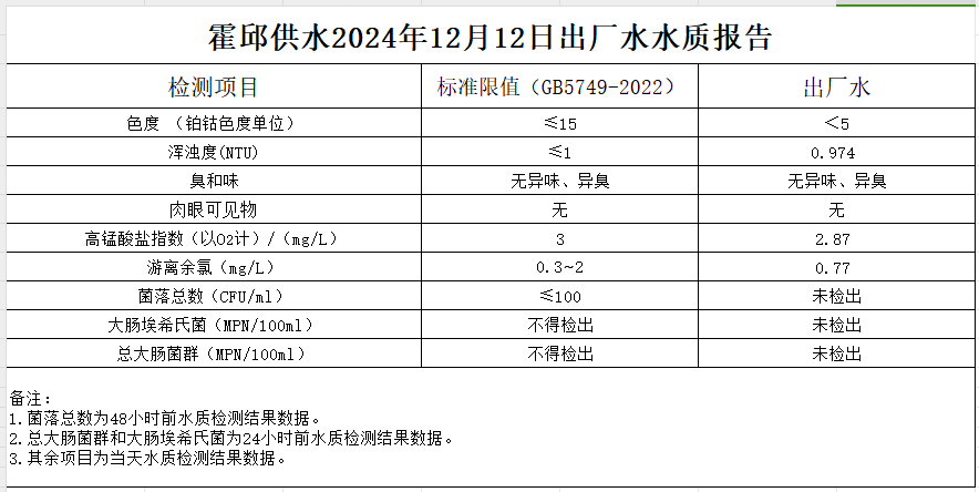 2024年12月12日出廠水水質(zhì)報(bào)告