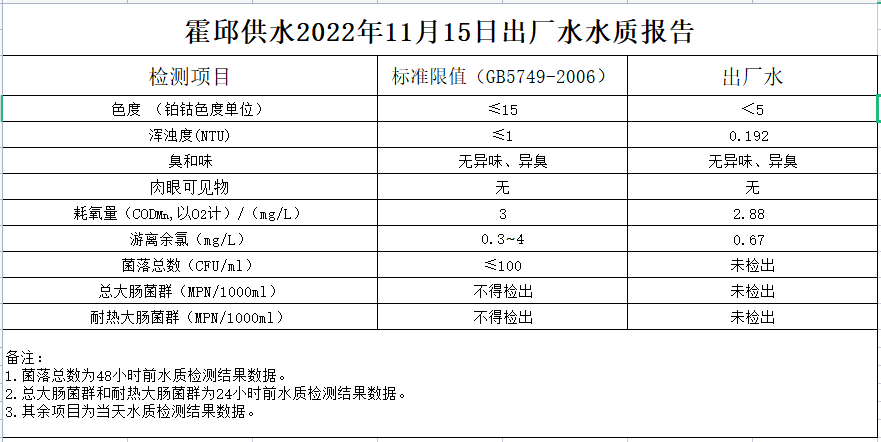 2022年11月15日出廠水水質(zhì)報告