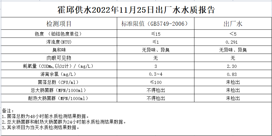 2022年11月25日出廠水水質(zhì)報(bào)告