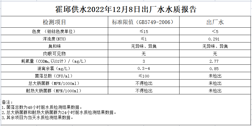2022年12月8日出廠水水質(zhì)報(bào)告