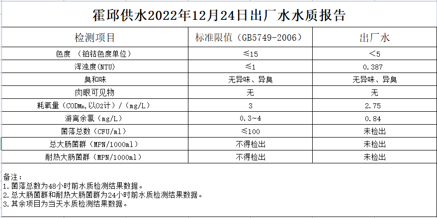 2022年12月24日出廠水水質(zhì)報(bào)告