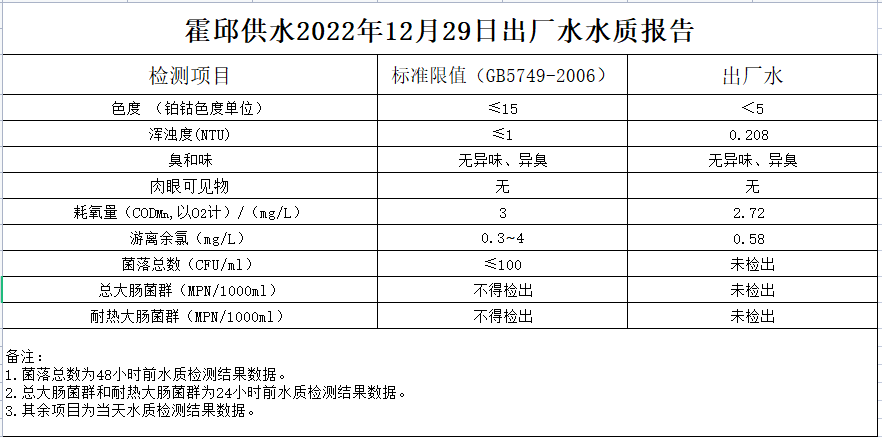 2022年12月29日出廠水水質(zhì)報(bào)告