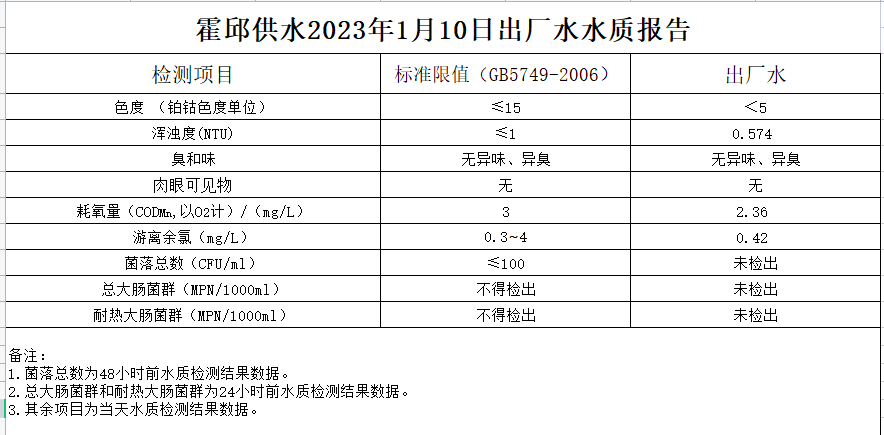 2023年1月10日出廠水水質(zhì)報(bào)告