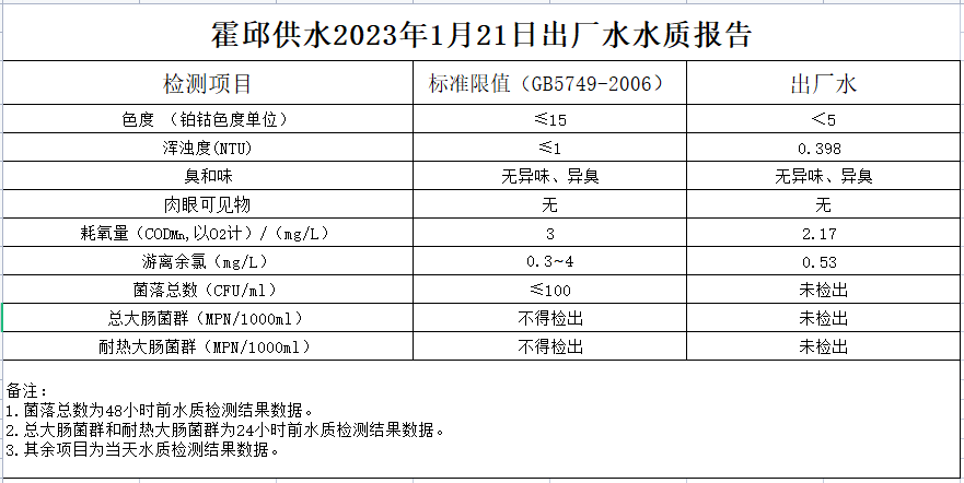 您現(xiàn)在的位置: 首頁 - 通知公告 - 水質(zhì)公告 - 出廠水水質(zhì)(8項) - 2023年1月21日出廠水水...
