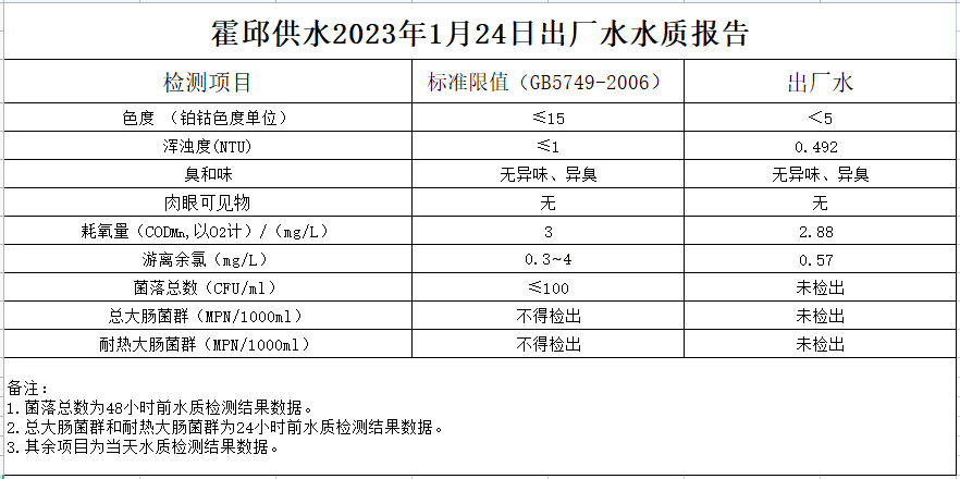 2023年1月24日出廠水水質(zhì)報(bào)告