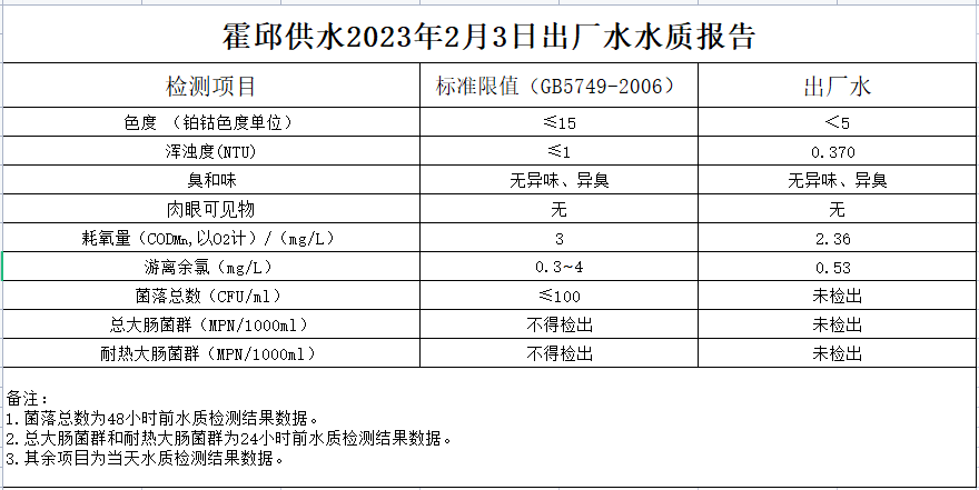 2023年2月3日出廠水水質(zhì)報(bào)告