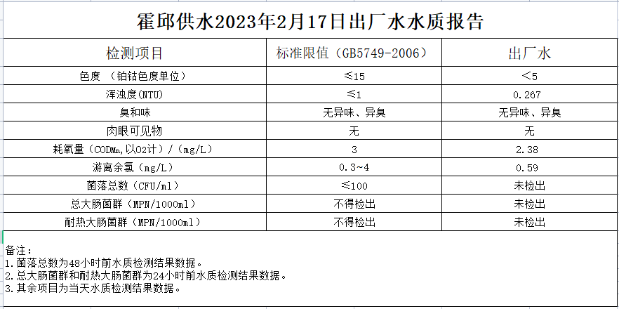 2023年2月17日出廠水水質(zhì)報(bào)告