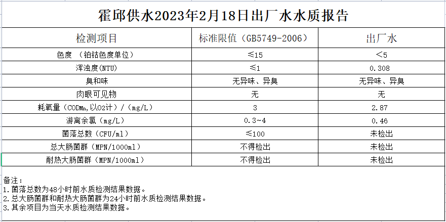 2023年2月18日出廠水水質(zhì)報(bào)告