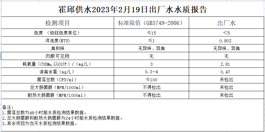您現(xiàn)在的位置: 首頁 - 通知公告 - 水質(zhì)公告 - 出廠水水質(zhì)(8項) - 2023年2月19日出廠水水...