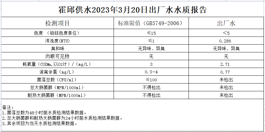 2023年3月20日出廠水水質(zhì)報(bào)告