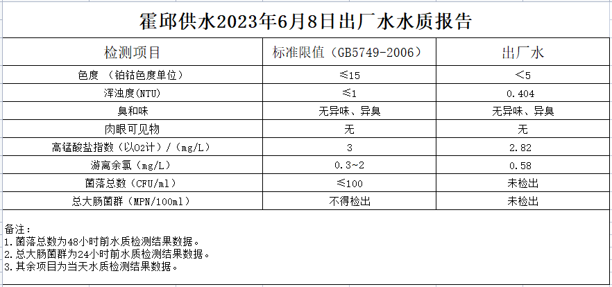 2023年6月8日出廠水水質(zhì)報(bào)告