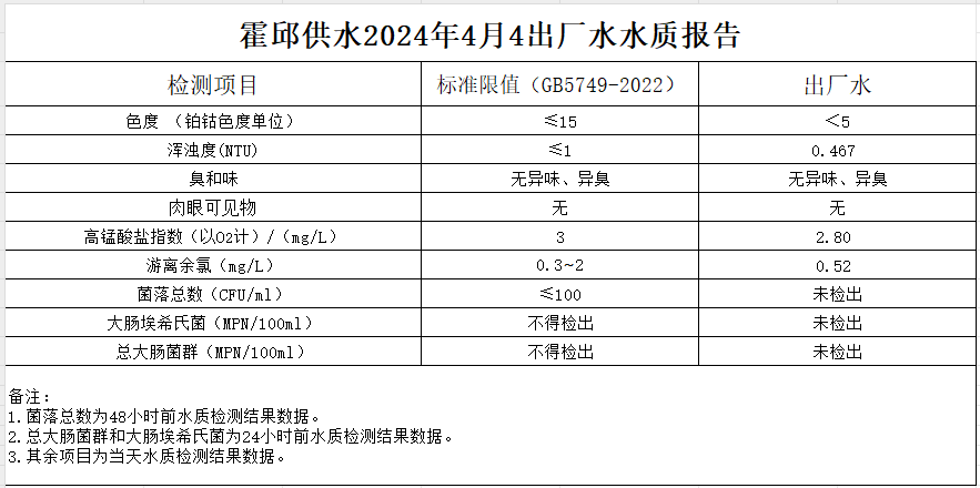 2024年4月4日出廠水水質(zhì)報(bào)告