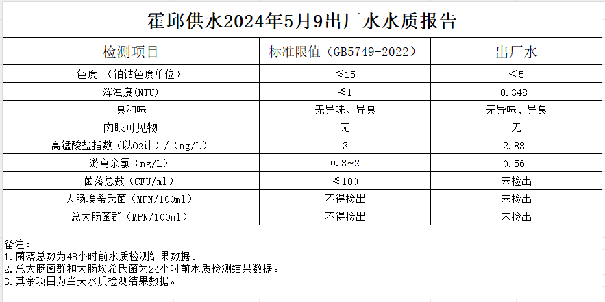 2024年5月9日出廠水水質(zhì)報(bào)告