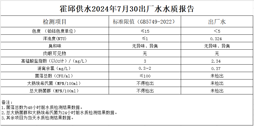 2024年7月30日出廠水水質(zhì)報(bào)告