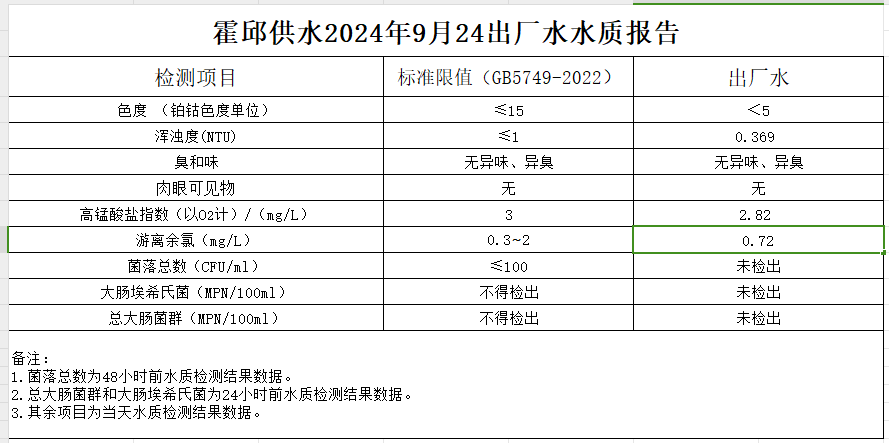 2024年9月24日出廠水水質(zhì)報(bào)告